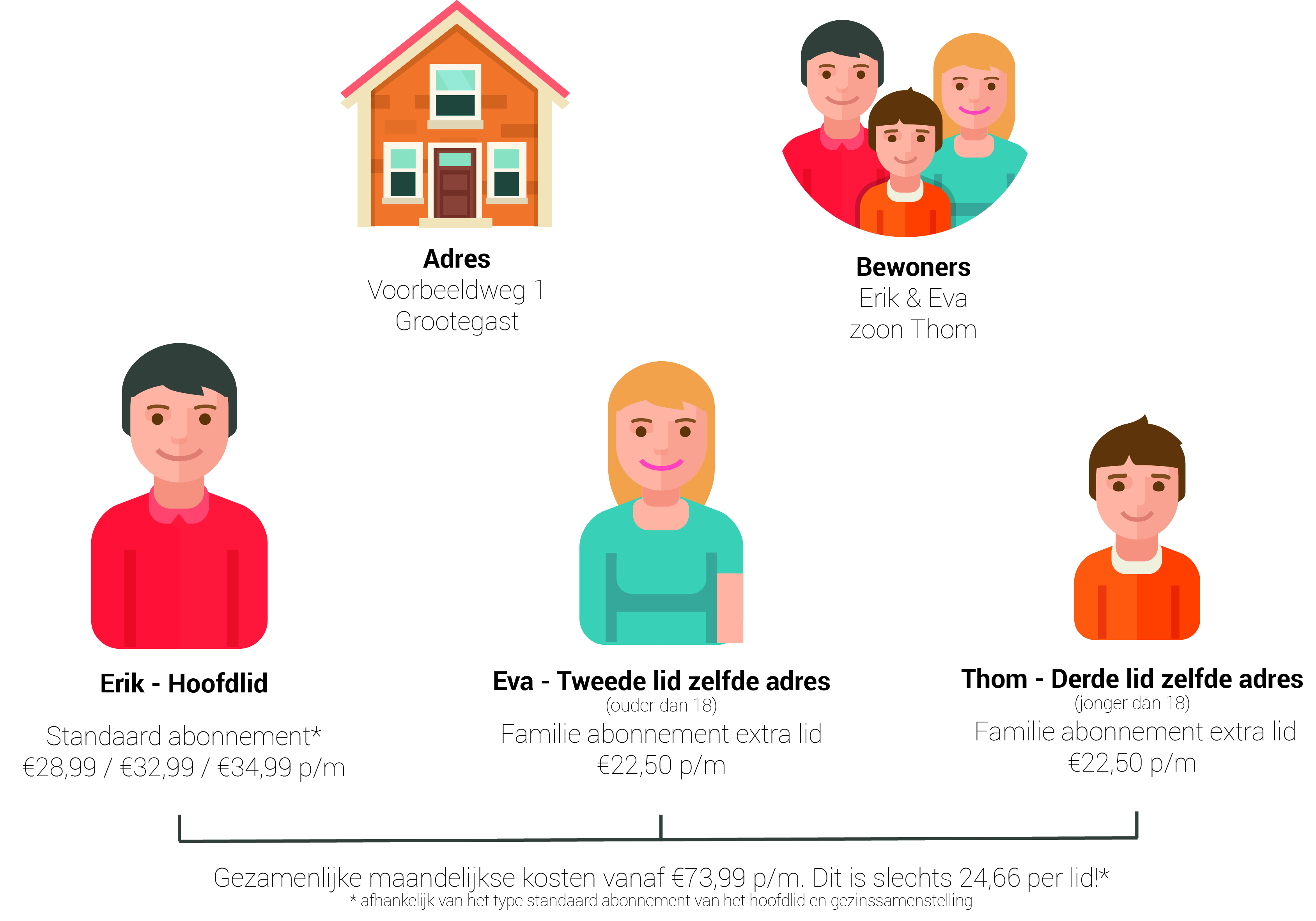 Op onze abonnementen-pagina vind je alle prijsinformatie die je nodig hebt om jouw eigen familie abonnement samen te stellen. Bij Sportloads is slechts één standaard abonnement per adres nodig, want alle andere bewoners krijgen gewoon korting en sporten dus extra voordelig!